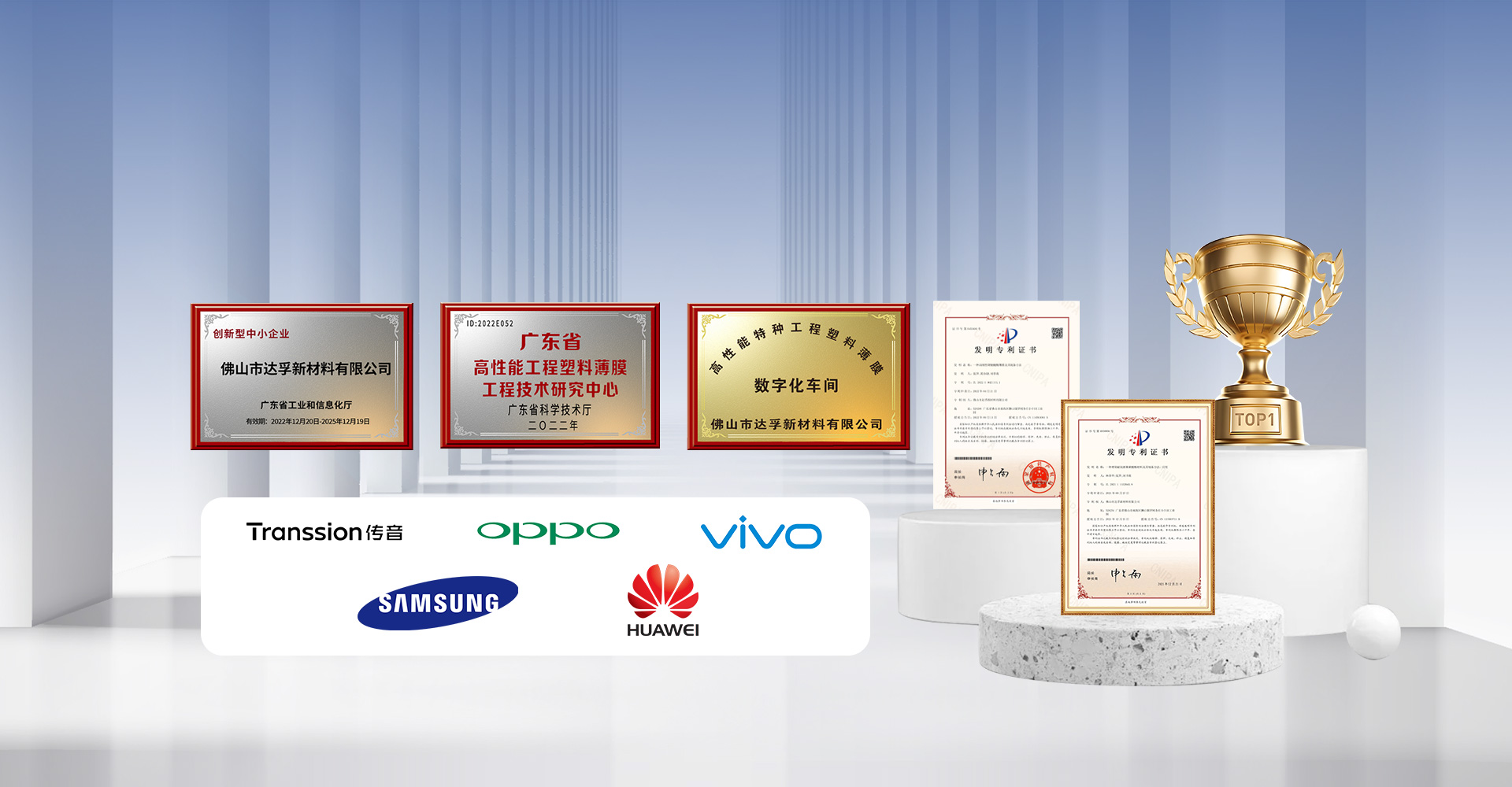 佛山市达孚新材料有限公司成立于2009年,是一家专业研发制造特种工程塑料薄膜和光学级薄膜的专精特新高新技术企业。企业建立了广东省高性能工程塑料薄膜工程技术研究中心,是《中国“聚碳酸酯薄膜及片材”国家标准--GB/T35450-2017》主要制定单位之一。